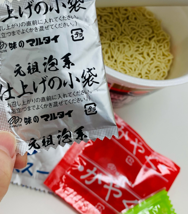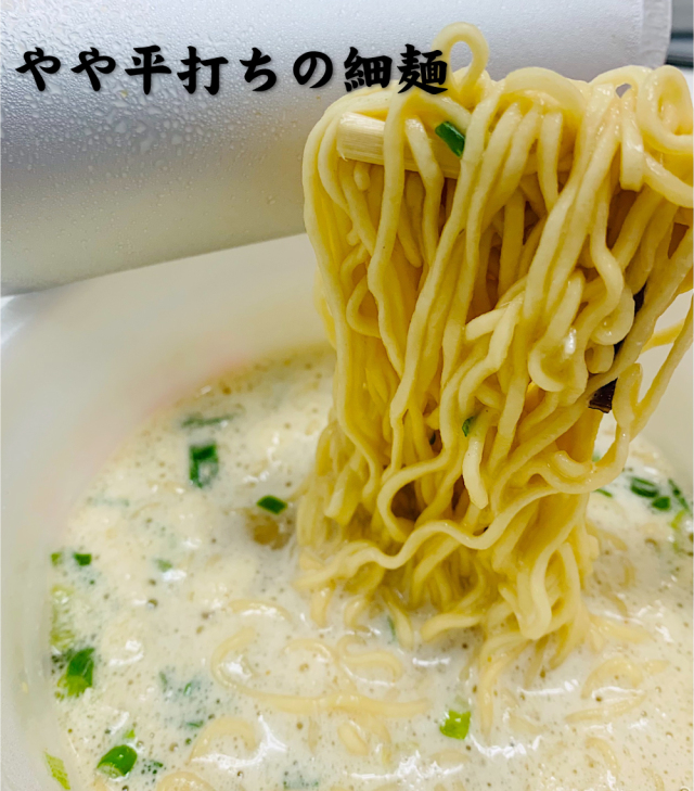 麺はやや平打ちの細麺で、熱湯を入れて60秒で完成。