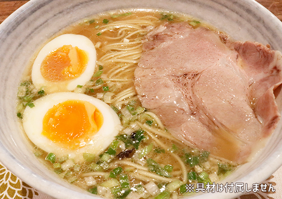 豚骨本来の旨みと甘味を引き出した、液体スープならではのお店の味の様な炊き出し感をお楽しみください。